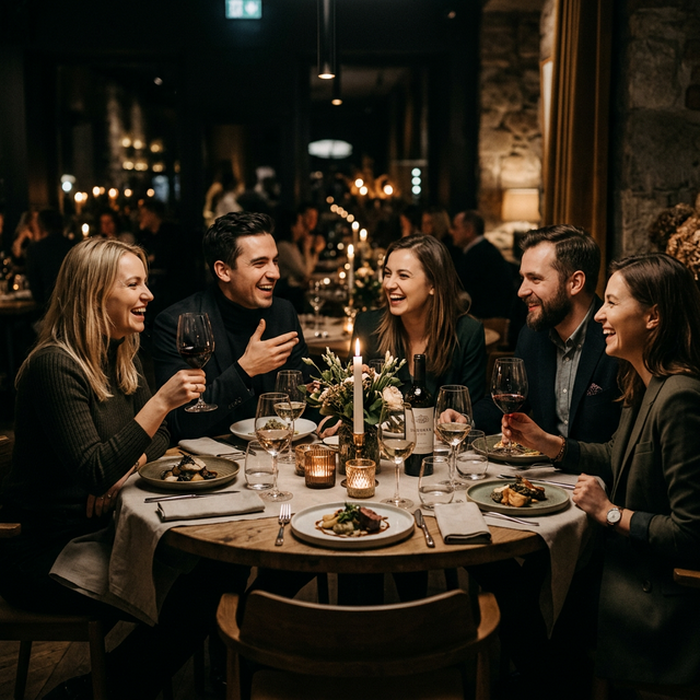 We look for venues with appropriate spacing between tables, where a 2–3 hour conversation isn't a race against a loud environment. A Metenos dinner is conversation, and good conversation needs quiet in the background.